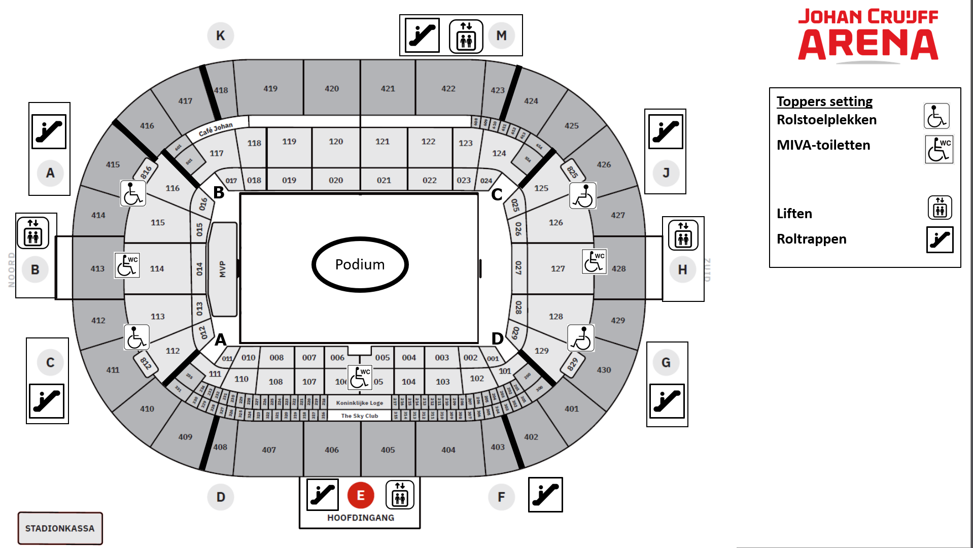 Voor alle informatie over de toegankelijkheid van het stadion willen we je naar onze toegankelijkheidspagina verwijzen.